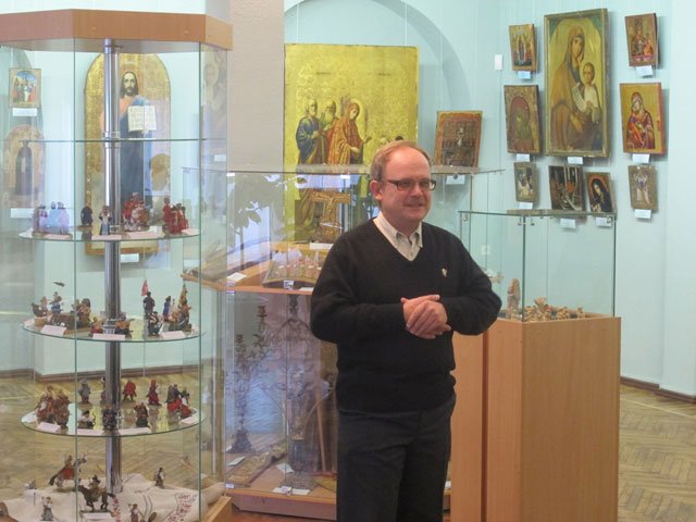 The author of the exhibition Krutous Volodymyr was born in 1969 in Kirovohrad region, now works at Kirovohrad regional state TV company as a presenter of the program "12 points" at the channel "Kirovohrad", and in his spare time for more than 30 years he is engaged with his hobby - military-historical miniatures. As a child, Volodymyr wanted to become a soldier, but for some reason it did not work. As a boy he began to sculpt from clay figures of soldiers, then he went through a lot of material - clay, wire until he tried foam plastics. Today Volodymyr Vasyliovych mostly uses foam plastics and wood for his miniatures. During this period, an amateur artist created more than 400 works, many of which are in private collections in Denmark, Canada, Germany, Norway, Poland, Russia and the USA, as well as at the stock assembly of Kirovohrad regional and Kirovohrad regional art museums. 200 works are at Kirovohrad regional general education school - a boarding-school of arts.
