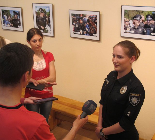 During this solemn oath the photographers From Kirovohrad Ihor Filipenko (website "Photoinform"), Olena Karpenko ("Ukraine-Center" magazine), Anastasiia Dziubak (website "Grechka"), Dmytro Semeniuk (News agency "Ukrainski natsionalni novyny"), Oleksandra Burianenko (website "Tusovka") had taken great, full of positive pictures of police girls, who were represented in June 14, 2016 in Kirovograd Regional Art Museum at the exposition "Women among the new patrol police".
