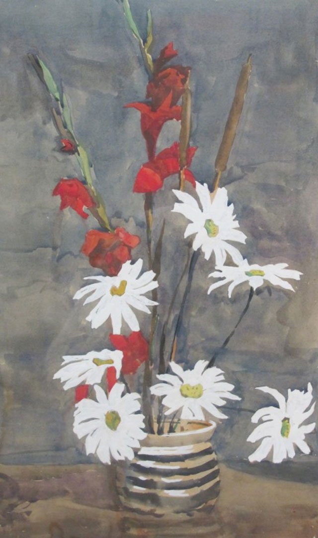When viewing the exhibition visitors can not miss the landscapes "The view on Balashivka" (2015), "The quarry. Village Ternove" (2001), "Autumn. River" (2016), "Biliaievskyi rate", "Village Lozuvatka" (2016), for each of which the author found an appropriate artistic and imaginative manner, and a number of still lives that attract with their purity and freshness: "Still life with samovar" (1972); "Marigold flowers" (2003), "A bouquet of daisies" (1978).