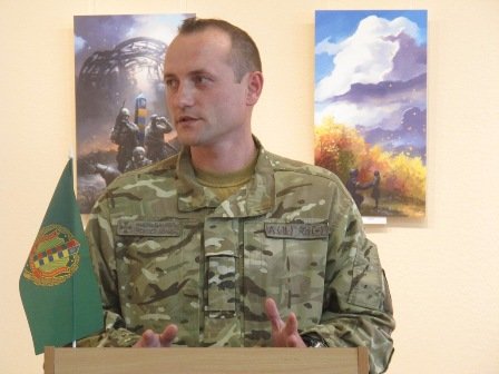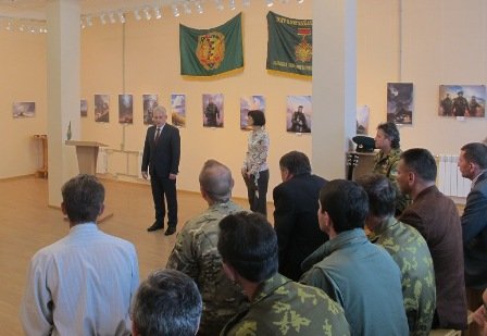 The First Deputy Chairman of Kirovograd regional state administration Sergiy Kovalenko and the assistant of the head of Kirovograd regional council Ivan Vladov acted during the exhibition opening. They handed the awards of Kirovograd region "for courage and bravery" to all present border guards – Andriy Levchuk, Yuriy Kovalenko, Olexandr Bandurko, Astra Blohina. The greeting to border guards were also heard from the Head of some regional recruitment centers of Southern Regional Office of the State Border Service of Ukraine, the major Roman Stetsun and the Head of the Union of Ukrainian border guards Oleg Kaplun.