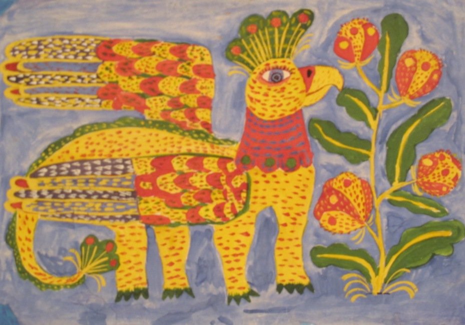 ... The "animal series" of Maria Pryimachenko is a unique phenomenon, which indeed has no analogues either in the domestic or in the world art. Her artworks with all its identity have something in common with folk pictures, but her fantastic animals are a work of the artist’s imagination. Large forms of quaint animals, a real downpour of colors combined with ornamental development of the body help to create impressive for its emotional power image. And here the magic of true art comes into effect: animals seem to move, breathe, grow before our eyes. Works of Maria Pryimachenko are like a world in which folk song, rhythm and color, image and decor combine with an extraordinary artistic power. And all of this happens in an incredible expression of movement, internal dynamics. When Maria was asked why she painted nonexistent animals and flowers, she replied: "Why to paint them such as they are - they are beautiful themselves, and I draw for the joy of people. I want more people to see my pictures, and I want everybody to like them.