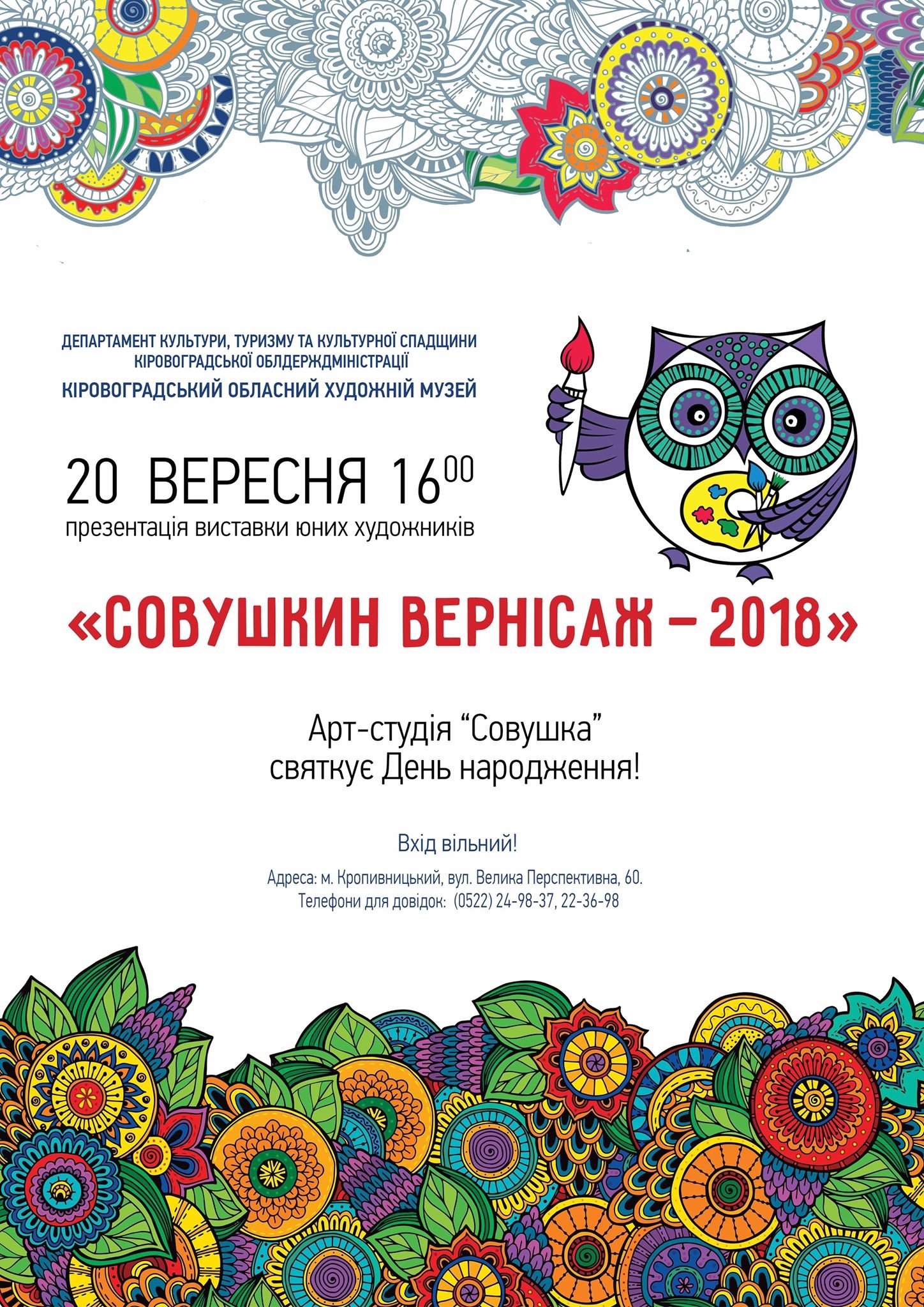 On September 20, 2018, in the Kirovohrad Regional Art Museum it was opened an exhibition of works by young students of the art studio "Sovushka".
