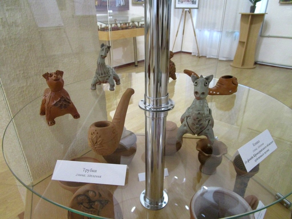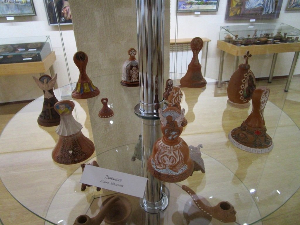 The exposition presents Alexander Gavrilenko's pottery: decorative panels and pitchers, cup and children's toys, whistles and pots, musical instruments and souvenir medals, bells and thematic plaques, cups and other clay items. Among them, 13 items from the museum collection, transmitted by the author in 2015.