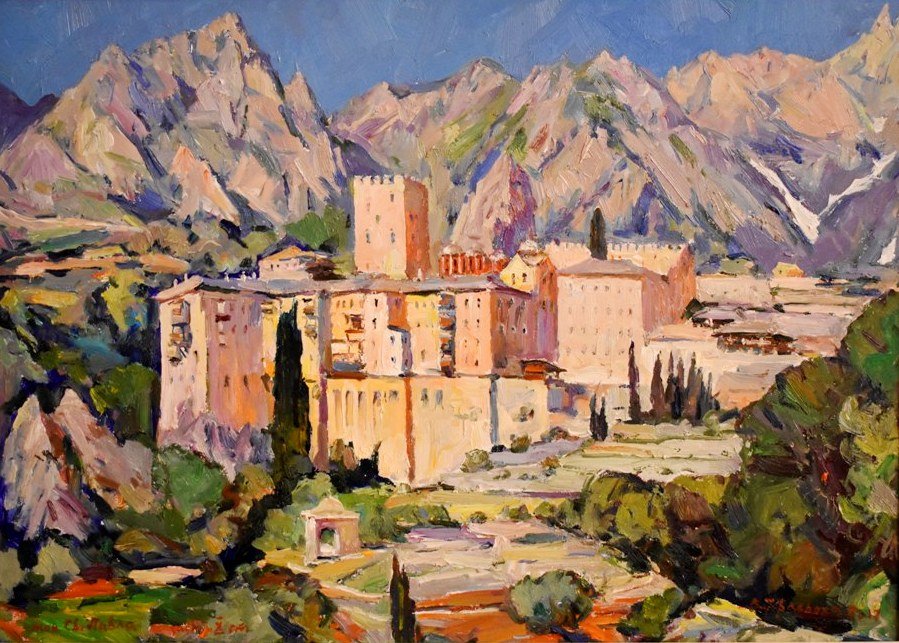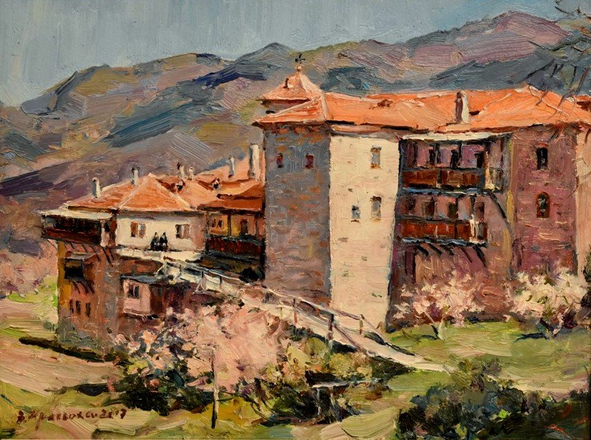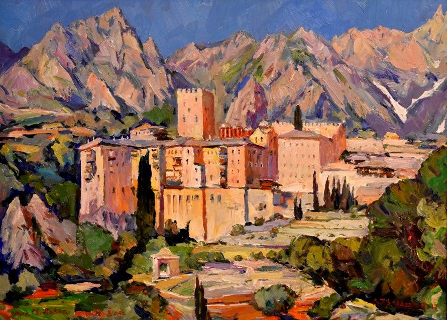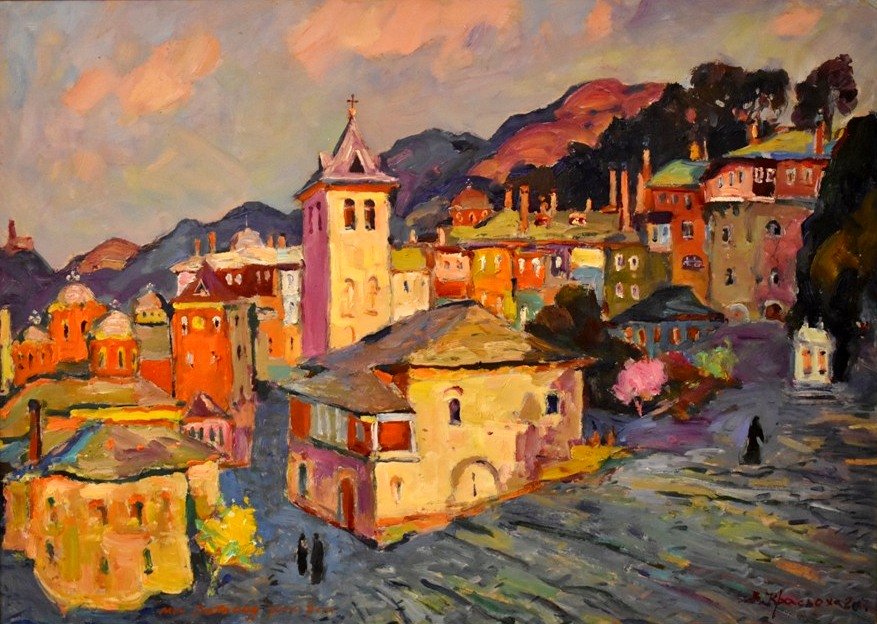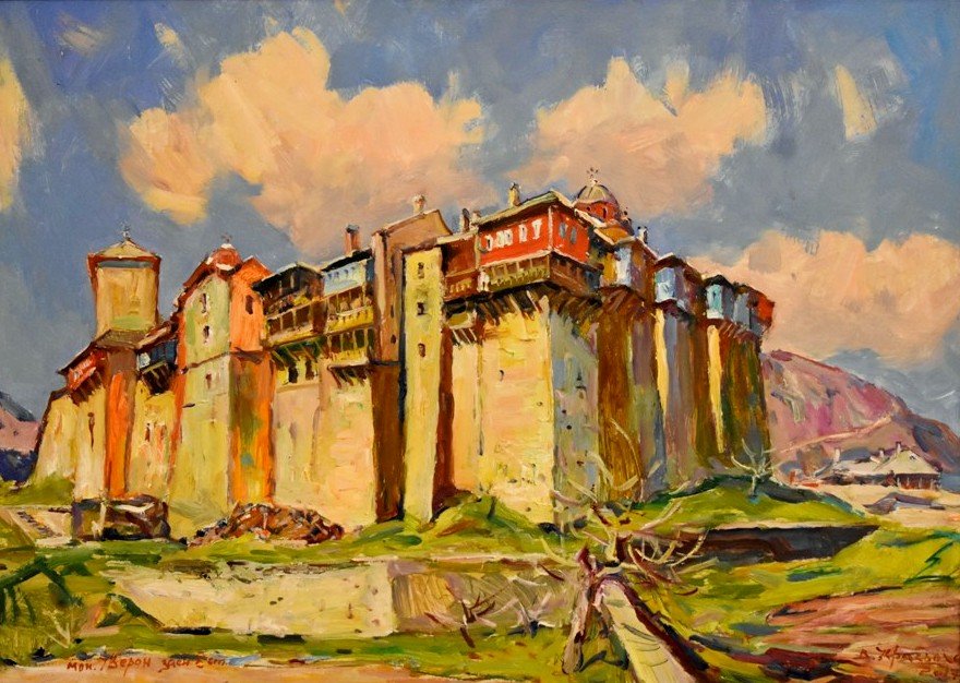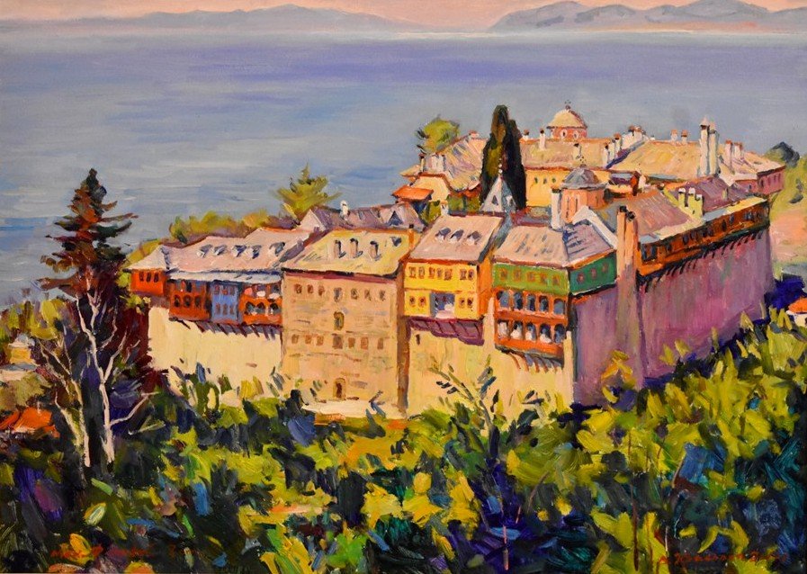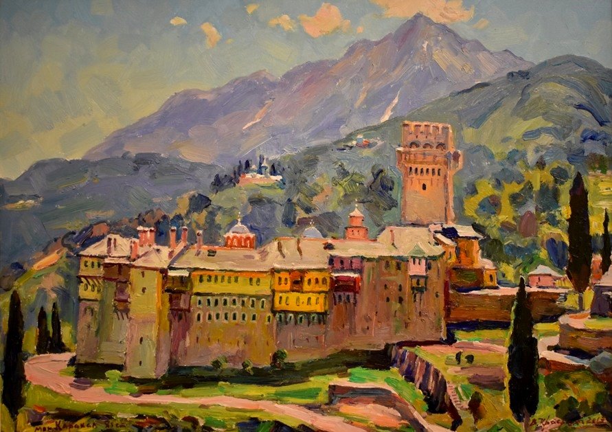 Етюди: «Вершина Афону», «Монастир Хіландар», «Монастир Каракал», «Монастир Ксенофонт, «Джерело Богородиці», «Монастир Св. Павла», «Монастир Велика Лавра», «Монастир Дохіар. Скоропослушниця», «Монастир Дохіар. Храм», «Уранополіс», «Монастир Костамоніт», «Монастир Ставронікіта», «Монастир Пантократор», «Монастир Іверон. Причал», «Монастир Есфігмен», «Монастир Велика Лавра», «Монастир Філофей», «Монастир Хіландар», «Літургія», «Монастир Симонопетра», «Бесіда», «Архімандрит Григорій», «Старець Силуан Афонський», «Схіархімандрит Іона (Ігнатенко)», «Пасій Святогорець», «Послушник Андрій».