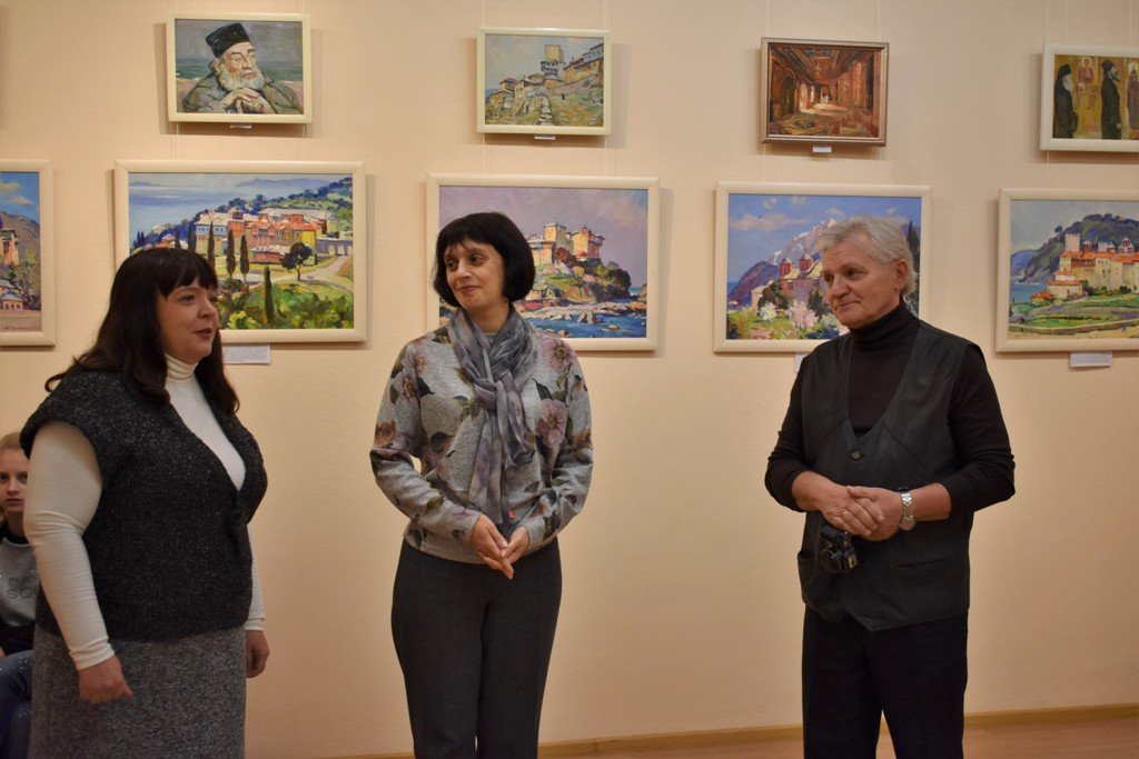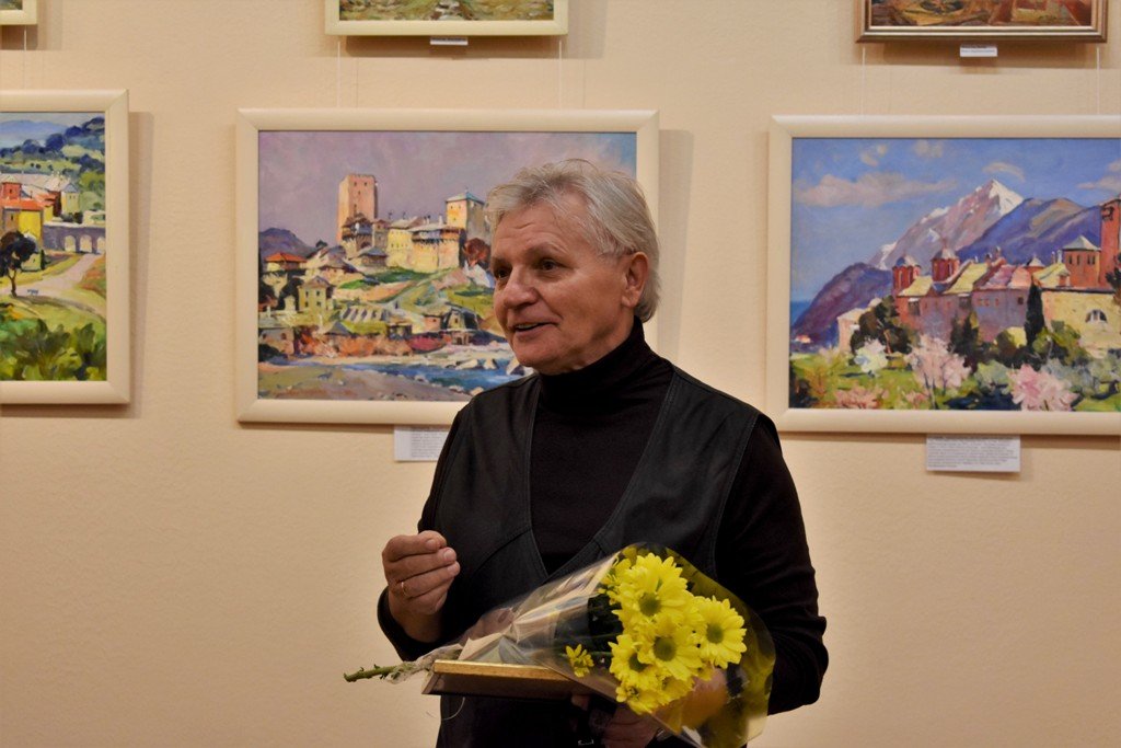 На виставці «Живописний Афон» в Кіровоградському обласному художньому музеї експонується 21 живописна робота та 26 етюдів із зображенням грецьких монастирів та храмів виконаннях у 2017 році під час двох творчих відряджень у центр православ’я на гору Афон. У кожному з храмів митець перебував по кілька днів – виконував ескізи, які розробляв уже в Києві.
