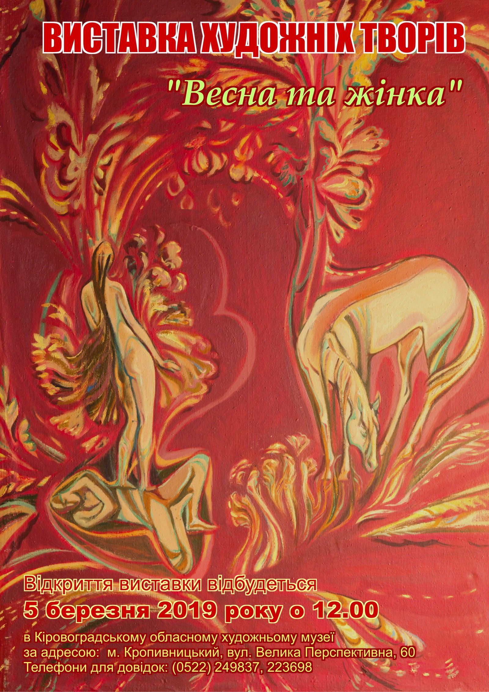 5 березня 2019 року в Кіровоградському обласному художньому музеї відкрито виставку художніх творів «Весна та жінка», як продовження доброї традиції кожного року, на початку весни, вшановувати найромантичнішу пору року та представниць чарівної половини людства.