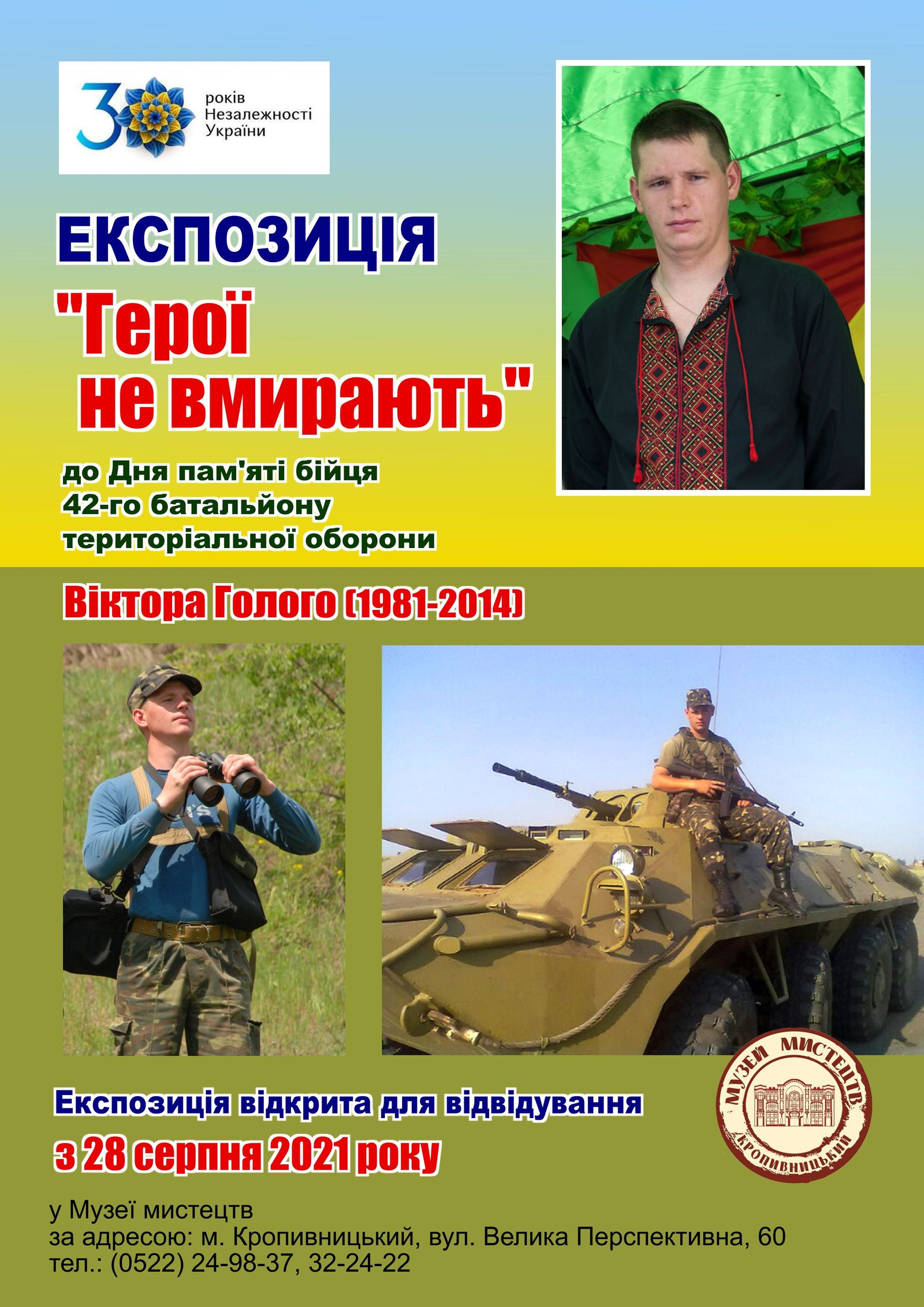 On September 3, 2021, the Art Mueum opened an exhibition of works "On the Wave of Life" by artist, member of the National Union of Artists of Ukraine Vasyl Koval dedicated to the 35th anniversary of the artist's birth. This is the second personal exhibition of Vasyl Koval, a member of the National Union of Artists of Ukraine, at theArt Museum.