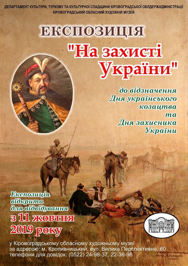 11 жовтня 2019 року в обласному художньому музеї розгорнуто експозицію «На захисті України» до Дня Захисника України та Дня українського козацтва.