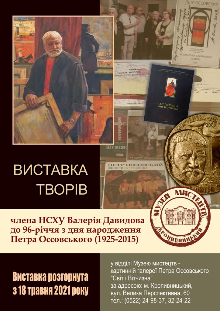 18 травня 2021 року у відділі Музею мистецтв – картинній галереї Петра Оссовського «Світ і Вітчизна» розгорнуто виставку творів члена Національної спілки художників України Валерія Давидова до 96-річчя від дня народження Петра Оссовського (1925-2015).