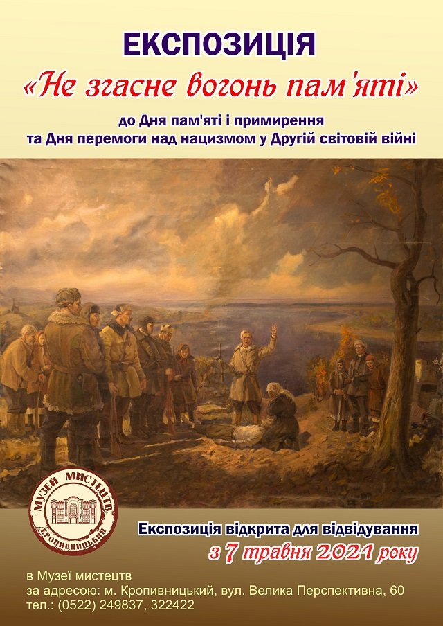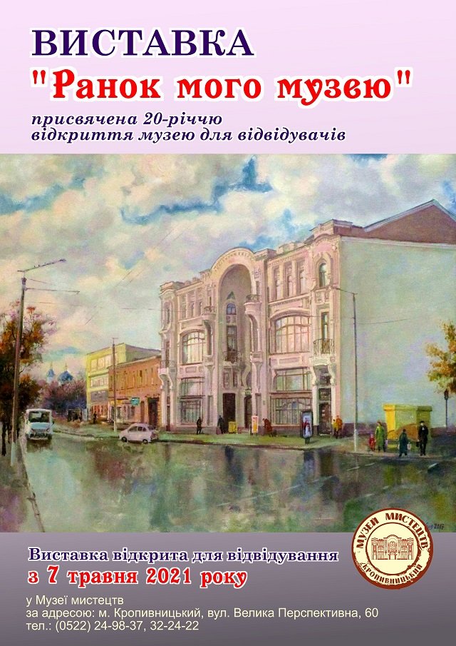 Напередодні 9 травня 2021 року у КЗ «Музей мистецтв Кіровоградської обласної ради» розгорнуто виставку творів «Ранок мого музею» до 20-річчя відкриття Кіровоградського обласного художнього музею (наразі – Музей мистецтв) для відвідувачів.