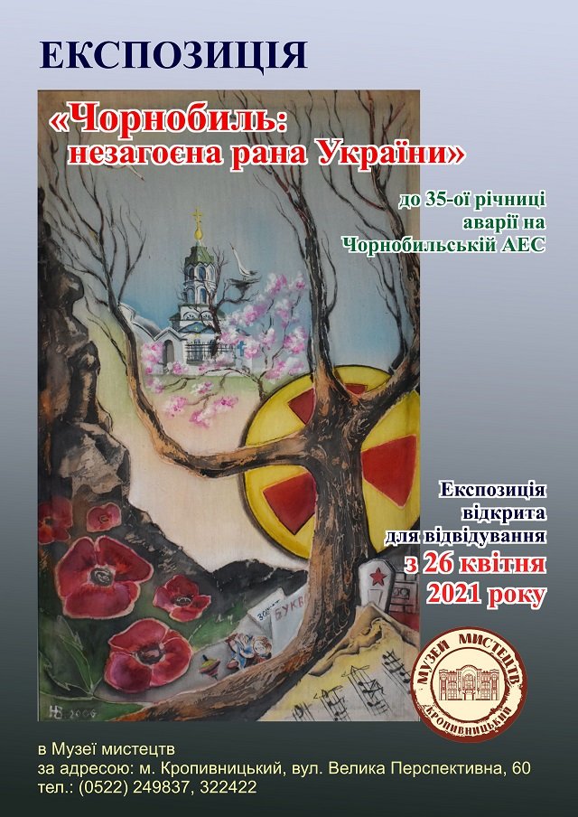 26 квітня 2021 року в КЗ «Музей мистецтв Кіровоградської обласної ради» розгорнуто експозицію «Чорнобиль: незагоєна рана України» з нагоди 35-ї річниці аварії на Чорнобильській АЕС – глобальної екологічної катастрофи ХХ століття, яка поставила людство перед загрозою цілковитого знищення.