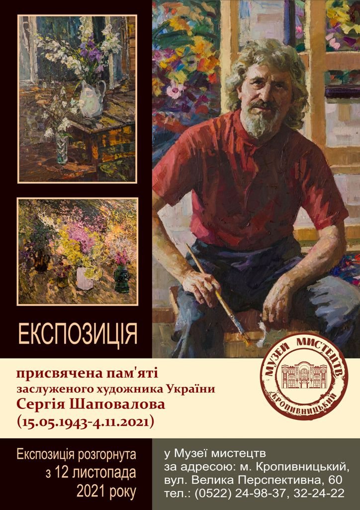 12 листопада 2021 року в КЗ «Музей мистецтв Кіровоградської обласної ради» розгорнуто експозицію, присвячену пам’яті заслуженого художника України Сергія Шаповалова (15.05.1943-4.11.2021).