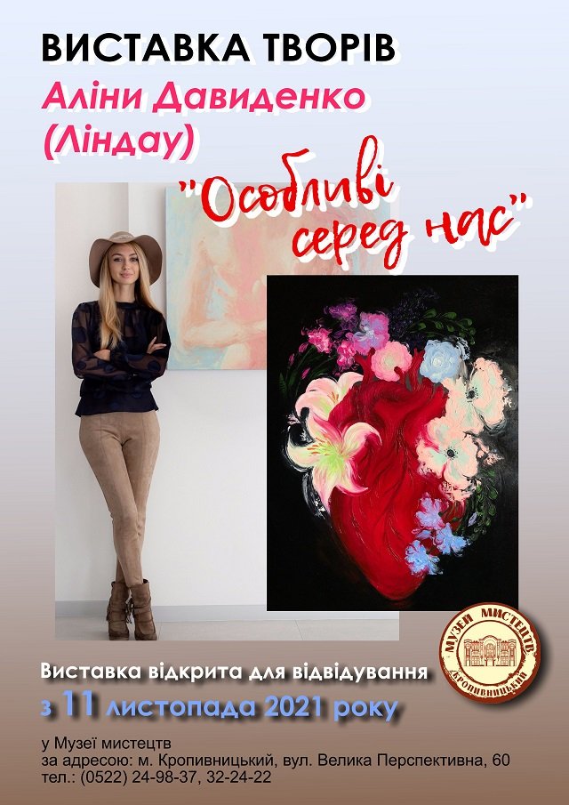 11 листопада 2021 року в Музеї мистецтв розгорнуто виставку творів Аліни Давиденко (Ліндау) під назвою «Особливі серед нас».