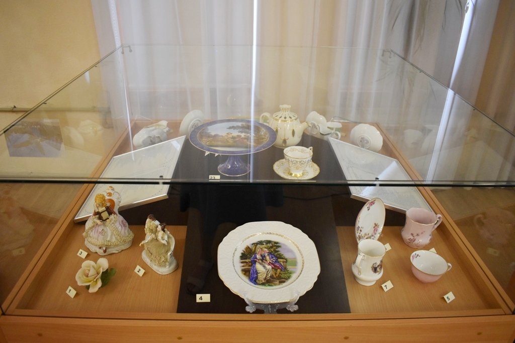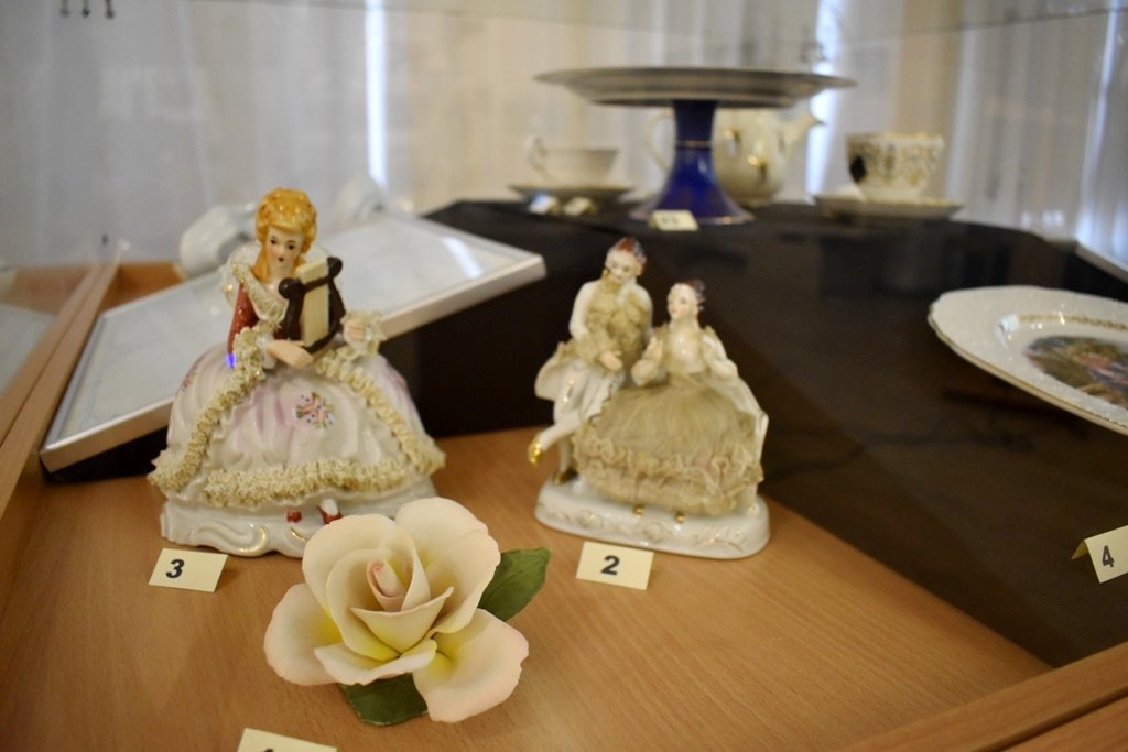 Серед експонатів можна побачити статуетки з мереживом виготовлені у Німеччині. Одна з них «Побачення» оздоблена натуральним тканинним мереживом. В іншої тканинне мереживо стало каркасом, який залили порцеляновою масою.