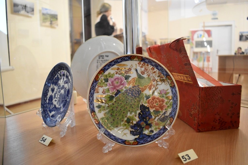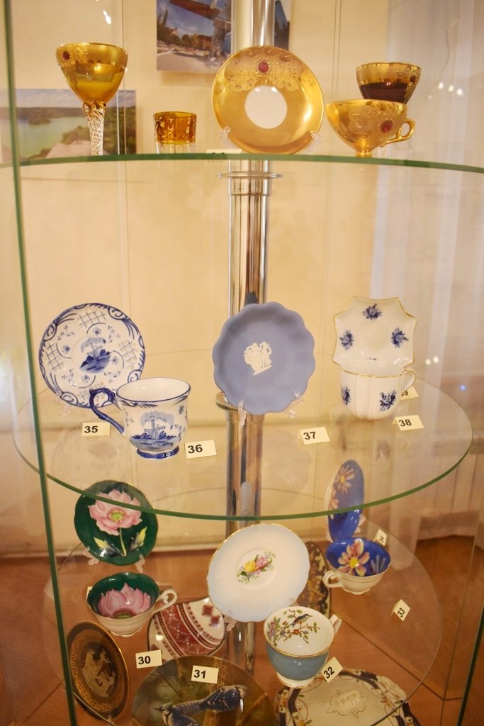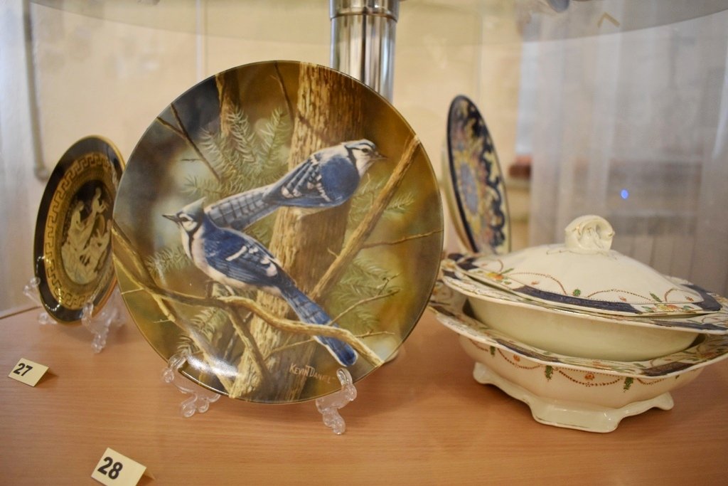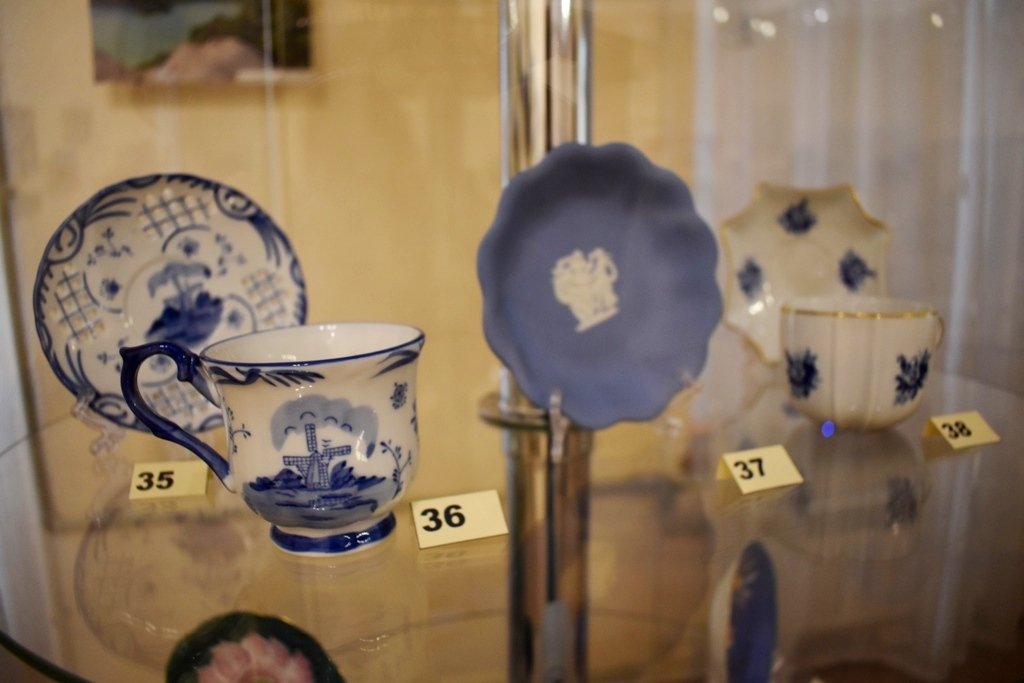 Унікальний і цікавий експонат – блакитна тарілка фабрики «Веджвуд». Типовими зразками порцеляни Веджвуд були вироби з блакитним тлом, на який старанно наносили рельєфний декор білого кольору. Це не зовсім порцеляна, бо не є напівпрозорою і має іншу температуру випалення.