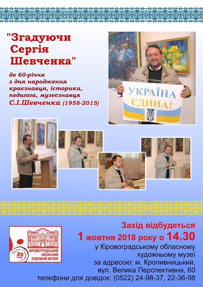 Сьогодні в стінах музею зібралися близькі друзі, колеги, однодумці, студенти для того, щоб згадати добрим словом педагога, історика, краєзнавця, справжнього патріота України Сергія Івановича Шевченка.