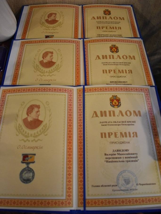 10 грудня 2018 року в Кіровоградському міському художньо-меморіальному музеї О.О. Осмьоркіна відбулося нагородження лауреатів обласної премії у сфері образотворчого мистецтва та мистецтвознавства імені Олександра Осмьоркіна.
