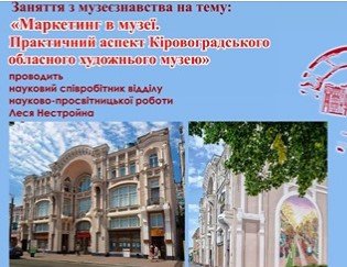 Заняття з музеєзнавства на тему: "Маркетинг в музеї. Практичний аспект Кіровоградського обласного музею".