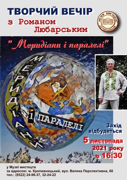 5 листопада в музеї мистецтв відбувся творчий вечір публіциста, поета, перекладача, автора текстів пісень, відомого дослідника творчості Арсенія Тарковського Романа Любарського.